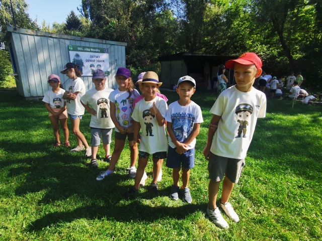 2. detský tábor V dňoch 11.-15. augusta sme po druhýkrát zorganizovali pre deti PrV a zamestnancov 905.cšbp v priestoroch Zámočku v Zemianskych Kostoľanoch detský tábor. Pre deti bol každý deň pripravený bohatý program : prekážková dráha, streľba zo vzduchovky, enviro prednáška na odkalisku za spolupráce ENO, ochladenie sa zmrzlinou, návšteva Chemického múzea, zdravotnícka príprava, ukážky kynológie, jazda na koni, maľovanie na tvár, šantenie v pene. Ukončenie tábora vyvrcholil slávnostným nástupom so štátnou hymnou a odpalom dymovníc vo farbe trikolóry, všetky deti dostali na pamiatku certifikát a pekný darček od veliteľa 905.cšbp Nováky. Deti si domov odniesli množstvo zážitkov a nových zručností.